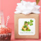 Stickers shown in a square shape with a cute St. Patrick's Leprechaun and clover print.