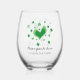 St Patrick's Day stemless wine glass with green lucky clovers.