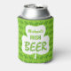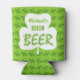Enjoy a nice Irish beer this Saint Patrick's Day with this cool, personalised beer can foam cooler. It says, "[Your Name] Irish Beer." The word "beer" looks like green bubbles. A white shamrock fills the centre, and the background has a green clover pattern. Top off the mornin' with a beer in this custom can cooler.