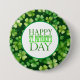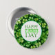 This St. Patrick's button pin is shown with a festive clover print.