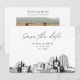 Modern St. Paul black and white save the date invitation. The front showcases a stunning sketch, setting the perfect tone for your wedding day. Add your own photo to the back and customise the text to make it your own. Enter the Zazzle design tool for additional design customisations.