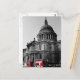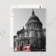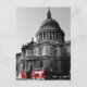 Black and White image of St Paul's Cathedral London with a selective colour Double Decker London Buses