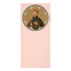 Customize the front for your church, school, or organization and add your text to the blank back of this versatile hand-out. + Prefer a different background color? See the suggested coordinating hues on the Color Palette postcard for this image. Color Palette postcards are found in an image's associated COLLECTION and in the Special COLLECTION devoted just to color palettes. + St. Peter Claver (1580-1654) was a Spanish Jesuit priest and missionary. In 1610, St. Peter volunteered to serve in the New Kingdom of Granada in the Americas, which encompassed present-day Panama, Colombia, and Venezuela. There he worked for forty years ministering to slaves upon their arrival at Cartagena, a major hub in the Transatlantic slave trade, and on the plantations in the neighboring countryside. His tireless efforts not only to convert the slaves to Catholicism by preaching Christ crucified but to ameliorate their sufferings earned him the epithet “Slave of the Africans”. + Here St. Peter is shown clad in Jesuit garb—a black cassock and collared cape. He holds a simple brown wooden cross and a crown of thorns, symbols of Jesus as “a man of sorrows and acquainted with grief” (Isaiah 53:3). The image is enclosed in an inner frame reminiscent of a Gothic eight-petalled rose (or wheel) window; the corners of the simple, square outer frame are filled with heraldic thistles. + St. Peter Claver died on 8 September 1654 of natural causes after a long illness. He is patron saint of Inter-racial justice, African Americans, African missions, slaves, and the Republic of Colombia. + Feast: September 9 + Image Credit (BK 058): Antique image of S[aint] Petrus [Peter] Claver, S.J., originally published in chromolithography by B. Kühlen, Mönchengladbach, Germany, unnumbered Jesuit Series, late 19th century, from the designer’s private collection of religious ephemera.