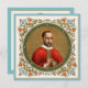 For a man credited with many firsts and one of its three co-founders, St. Peter Faber (1506-1546) is not terribly well known outside Jesuit circles. At first, he was sole college roommate of St. Francis Xavier at the University of Paris. The men were later joined by St. Ignatius Loyola, a former soldier who was fifteen years their senior. St. Peter was St. Ignatius’s first recruit to his nascent Society of Jesus (Jesuits) embracing the Spiritual Exercises; St. Francis, who was intent on an academic career, proved a tougher sell. St. Peter was the first Jesuit priest, being ordained on 30 May 1534. As such, he celebrated the Mass at Monmartre in the underground Chapel of the Martyrs on 15 August later that year during which the first Jesuits took their religious vows. (It is his role as priest that is emphasised in the image here: St. Peter is dressed for Mass in a red chasuble and is about to distribute Holy Communion. The Saint’s facial features conform to contemporary portraits and his pose to several engravings and paintings that memorialise the event.) After Loyola himself, Faber was the most esteemed of the early Jesuits especially in spiritual matters. After the congregation was placed at the disposal of the Pope and its Rule confirmed six years later in 1540, St. Peter tirelessly crisscrossed Europe on foot preaching and teaching in Italy, Germany, Portugal, and Spain—a kind of ‘home’ missionary. His writings exhibit a deep devotion to the angels and the saints. Brought down by a fever and worn out from his labours, St. Peter died in Rome on 1 August 1546, reportedly in the arms of St. Ignatius himself. On 17 December 2013, Pope Francis declared Peter Faber a saint by a process known as ‘equipollent canonisation’, a process that dispenses with standard procedures and ceremonies in the case of someone long venerated. St. Peter Faber was the Pope’s favourite Jesuit. + Feast: August 1 (August 2 among the Jesuits) + Image Credit (BK 051): Antique image of B[lessed now Saint] Petrus [Peter] Faber, S.J., originally published in chromolithography by B. Kühlen, Mönchengladbach, Germany, unnumbered Jesuit Series, late 19th century, from the designer’s private collection of religious ephemera. The Saint’s red chasuble is an example of artistic license: the liturgical colour of vestment for the Feast of the Assumption is and was white.+ Feel free to change the colour of the edging. See the Colour Palette postcard for recommended hues. Colour Palette postcards are found in an image's associated COLLECTION and in the Special COLLECTION devoted just to colour palettes.