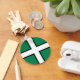 Keychain with design with a flag of historic county of Devon, in England, Great Britain; green flag with a white cross with a black border