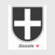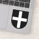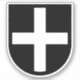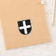 Our St. Piran’s Shield is based on the Cornish Flag of St. Piran (q.v.). It is blazoned with a white cross on a sable black field. Image Credit (St. Piran’s Shield): Saints_Aplenty.