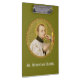 If you would prefer to personalise the back panel or leave it entirely blank, simply delete the image and name of the featured saint. + If bullied youngsters need a heavenly advocate, they need look no further than St. Stanislaus Kostka. Not to be confused with his namesake St. Stanislaus Szczepanowsky of Krakow (1030-1079), St. Stanislaus Kostka (1550-1568) was a young Polish nobleman who was bullied at his Jesuit boarding school in Vienna by his own brother Paul who found his younger sibling’s religious fervour and amiable personality trying. Having run away from school and against the wishes of his family, he joined the Society of Jesus (Jesuits) in 1567. Not 10 months later, he died of a fever on the Feast of the Assumption at the tender age of 17 in, as the saying goes, the odour of sanctity. + Feast: November 13 + Image Credit (SNV 25): Antique image of St. Stanislaus Kostka from a late 19th-century chromoxylographic devotional print published by St. Norbertus Verlag, Vienna, Austria, in the designer’s collection of religious ephemera.