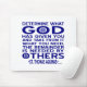 In Democrat blue, the words of St. Thomas Aquinas, "Determine what God has given you and take from it what you need, the remainder is needed by others." Design influenced by the Christian Left.