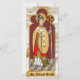This is a colourized version of the antique engraving presented as our St. Thomas Becket Holding a Sword (M 033). In arriving at our visual reconstruction, we have followed the description by Francis Joseph Baigent who discovered, drew, and published it in the Journal of the British Archaeological Association, Vol. X (1855), pp. 74-75. We quote: “The most beautiful figure of this saint perhaps that has been preserved in any church in this country is represented in the accompanying plate (see plate 6). This we denuded of its whitewash in the year 1845, and it was then well preserved, and had evidently been covered up, on purpose prevent its being destroyed; …. The painting, which is engraved half the size of the original, is painted within a sunken panel in front of the Easter[n] Sepulchre and tomb of John Waller, esq., in the chantry, Stoke Charity church, Hants. … St. Thomas of Canterbury, in this example, is represented holding in his right hand a sword, being an emblem of his martyrdom. The nimbus encircling his head is gilt, the mitre being white and its lining blue; the face is noble and dignified, with an expression of sternness, but still pleasing. It has been remarked, that those paintings which have come down to us of this saint, all seem to have been done from some original portrait; and in every instance he is represented beardless. This painting, certainly, confirms this opinion in the strongest manner, from the features possessing such a peculiar character. The archbishop is represented in golden vestments, such as would be worn during the octave of the feast of our Lord's Nativity, the time of his martyrdom ; the dalmatic, in accordance with the rubrics, is of a bright red colour with golden fringe; over the chasuble is depicted the metropolitan pallium ornamented with its five patée fitchée crosses, the two upper ones being probably pins. The sandal is of a bright blue colour with its cross in gold. His crozier, which is held in the left hand, is also gilt; with the exception of the staff, which is painted white, intended perhaps to indicate silver. We saw this painting a few weeks since, and found its condition far from satisfactory, the face and other parts being much injured: ….” We have used our judgment in colorising details not otherwise described. + St. Thomas Becket is patron of secular clergy. + Feast: December 29 + Image Credit: The colourized version is a Saints_Aplenty Exclusive (SAE).