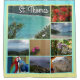 Beautiful photo collage with a yellow and aqua blue border of St. Thomas, an island that is surrounded by both the Caribbean Sea and the Atlantic Ocean.
