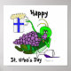 Here's another one of our St. Urho's Day designs. This one is of a drunk or inebriated grasshopper. He drank too much beer and wine, while eating the grapes! Since he is the origin of the Finnish, we also included the Finnish Flag emblem on the beer stein. You can customise this item also. Do do that, just click "Customise" and then the area that you want to add something to. Click the "Add Text" and insert what you want. Use the "F" to change the fonts. A drop-down menue with lots of options will appear. Click the one you want and then "Close." To change the font colour, click the box. St. Urho's Day is March 16, the day before St. Patrick's Day. For more information, visit our website at http://www.brownielocks.com/urho.html