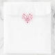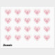 This sweet Catholic heart illustration features St. Valentine drawn in a hand-drawn magenta style, centered on a pale pink background. The saint is depicted as a gentle bishop, surrounded by a few scattered hand-drawn hearts that add a playful, child-friendly touch.
