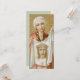 Who was she? The nameless woman healed of a haemorrhage of blood (Luke 8:43–48)? One of the women who followed him during his ministry? Just one of the bystanders? This side of heaven we will never know for sure anything about her. She’s not mentioned by name in any of the four canonical Gospels. Nevertheless, she will forever be remembered by the Sixth Station of the Cross for her simple, spontaneous gesture: She pushed past the crowd and the guards to offer a cloth, probably her veil, to a convicted criminal on the way to his death, death on a cross, that he might wipe his bloody face. Tradition calls her St. Veronica of Jerusalem (1st century); and the man, of course, was Jesus, who miraculously left his likeness on the cloth. Today, St. Veronica—the name given her means “true icon”—is revered as patron saint of photographers, laundry workers, and rectory housekeepers. + Feast: July 12 + Image Credit (JM 60): Antique image of St. Veronica of Jerusalem, originally published in chromolithography by Josef Müller Art Publisher, Munich and New York, first quarter of the 20th century, from the designer’s private collection of religious ephemera. This is just one of over sixty images in a very popular style of devotional prints issued in several sizes and formats by Müller at the turn of the last century. + Prefer a different colour on the back? Feel free to choose from among the suggested colours on this image's Colour Palette postcard. Colour Palette postcards are found in an image's associated COLLECTION and in the Special COLLECTION devoted just to colour palettes.