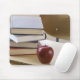 Stack of books, apple, and school desk mouse mat