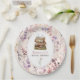 These sweet floral paper plates is for a bridal shower event, with the theme 'New chapter'. The plate features illustrations of a watercolor stack of floral decorated books and the background is spring wildflowers in soft colours. Classic old english text style font for a feeling of old kids illustration books. Great for a book loving bride.