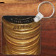 This brilliant golden keychain is inspired by a stack of shiny gold coins. Alternating bands of bright gold and deep golden brown arch in a unique pattern. Personalise with a Name or Your very own text.