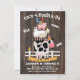Adorable Farm Animals Birthday Party invitations. Features a stack of cute farm animals: pig, cow, sheep, rooster, goat and baby chick on a dark barn wood background. Great for a 2nd birthday, but any age will work.