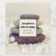Birthday or other event bottle labels with a photograph featuring rocks stacks on top of each other. Surrounded by loose white rocks and little white flowers.