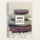 Spiral planner with a photograph featuring rocks stacks on top of each other. Surrounded by loose white rocks and little white flowers.