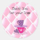 A cute design featuring colorful stacking teacups on a pink diamond background. Says 'thank you for your time', change message as desired.
