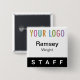 Easily personalise our square pin back name badge with your logo, staff name, or other custom text. It attaches with a safety pin back. Designed in black and other colours (all colours are customisable). Our square buttons are 2 inch x 2 inch. Made in USA. No minimum order quantity and no setup fee.
