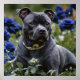 Staffordshire Bull Terrier In Blue Rose Garden, Poster