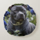 Staffordshire Bull Terrier In Blue Rose Garden, Round Cushion