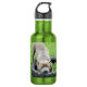 Featured on this stainless steel water bottle is a young male blue staffy playing with his chew toy,