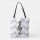 Three wavy staffs of music behind a treble clef. This white on black graphic design will delight the music lover or musician. Design by SusanEileenEvans