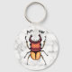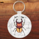 Personalised beetle entomology keychain with an artistic vector illustration depicting a stag beetle with big antlers patterned with decorative elements in fun yellow and orange colours. Great gift for an entomologist with interest in Coleoptera.