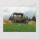This post card displays pumpkins sitting around hay bales with a replica of a stage coach from the Old West parked prominently in the centre. Perfect for those short notes or messages in the Fall to friends and family.