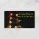 Colourful strips of stage lights on black is a perfect business card design for stage and set builders, designers or entertainers.