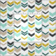 This bright modern fabric features rows of staggered chevrons in varying widths. Available in custom colours, just email me at modernmatrimony(at)gmail(dot)com.