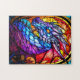 This is a puzzle of blue and purple dragon. Its imagery depicts a blue and purple dragon done in stained glass style. This puzzle makes a great gift for individuals who love fantasy, dragons, and things done in stained glass style. This puzzle's content is appropriate for individuals ages 6+. It is available in all sizes and its image may be adjusted by the customer.