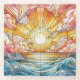 Coasters can add that extra touch to your table scape, showcasing a breathtaking stained glass pattern that captures the serenity of a warm sunset. The design is a harmonious blend of warm shades of radiant oranges, soft pinks, and glistening yellows, melding seamlessly with tranquil shades of blue to reflect the beauty of a rolling ocean. The detailed stained glass effect on these drink coasters adds depth and texture, making the colours shimmer like light filtering through real glass window panes.