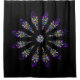 Here is a shower curtain with a lovely stained glass pattern in dominant colours of purple, blue, yellow and black. Abstract feathers circle a central mask to form a spiritual mandala design with a Native American sensibility.