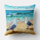 Stained Glass Artwork of Seagulls on a Beach Cushion