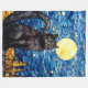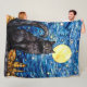 Stained Glass Black Cat Starry Night Fleece Blanket