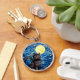 Stained Glass Black Cat Starry Night Key Ring