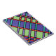 A stained glass grid pattern in your favourite bold colours. A geometric pattern featuring red, orange, violet, purple, lime green. Bright jewel tone colours to set the vibe.