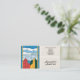 Business cards with a hand-drawn illustration of a stained-glass window with a blue sky, white clouds, red, green and yellow buildings: perfect for stained glass artist, but also interior design, florist, artist designer, wedding planner, etc