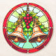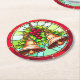 Stained Glass Christmas Bells with Holly Round Paper Coaster
