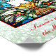 Bright and vibrant stained glass design of a bouquet of Christmas holly and berries surrounding a candle, in a red frame. With pale green glitter background and "Merry Christmas". You can change the customisable personal greeting at the bottom of the design to your own message.