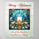 Stained Glass Christmas Candle Holly Green Glitter Poster