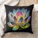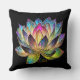 Stained Glass Colorful Lotus Flower on Black Cushion