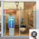 Stained Glass Cross Blue Black White Window Cling
