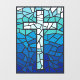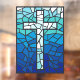 Stained Glass Cross Blue Black White Window Cling