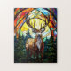 This is a puzzle of a deer. Its imagery depicts a deer imagined in stained glass style. This puzzle makes a great gift idea for individuals who are into nature, deer, or the stained glass style. This puzzle's content is appropriate for individuals ages 6+. It is available in all sizes and may be adjusted by the customer.