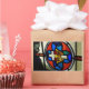 Stained Glass Church Window with Crown and Cross