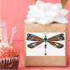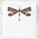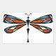 An elegant hand-sketched dragonfly in prismatic stained glass colours alights gracefully on this sticker.